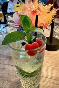 Heidi S: „Ich fand das Ambiente sehr, sehr schön! Der Wintergarten war nicht zu kalt und nicht zu warm und gut besetzt: Entsprechend lebendig auch die Lautstärke. Die Aufnahme der Getränkte dauerte etwas, aber meine selbstgemachte Gurken-Minze-Limonade war dafür mit so viel Liebe zubereitet, das sie die Wartezeit ausgeglichen hat. Auch mein Camembert war mit Sorgfalt und Liebe zubereitet, kein fertiges TK, denke ich! Mir hat alles sehr gut geschmeckt. Und das Personal war nett und zuvorkommend.“