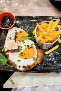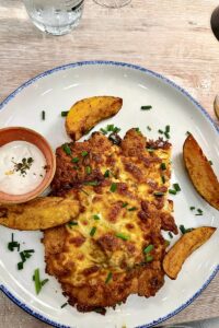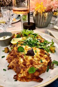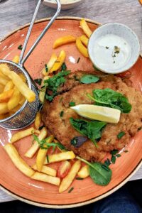 Bettina K-W: „Mein Schnitzel Wiener Art war ok, durchschnittlich. Der kleine Salat mit dem dezenten Knoblauch-Dressing dafür war das Beste.“