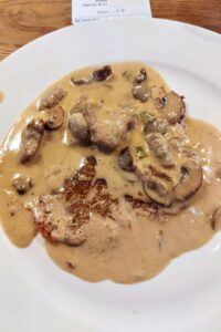 Röschti Kalbsgeschnetzeltes mit Pilzen