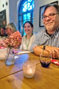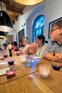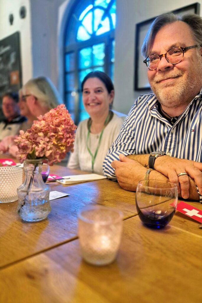Danke auch an Jens Friedländer (er kochte das Züricher Geschnetzelte) und Jona, der Fitnesstrainer aus dem benachbarten Sportsudio „Das Well“, der unsere Frauen kennenlernen wollte und heute auch im Service eine gute Figur machte. Fazit aus den Chats: Ein köstlicher Abend mit Männern als Begleitung, den wir im nächsten Jahr unbedingt wiederholen müssen!