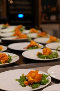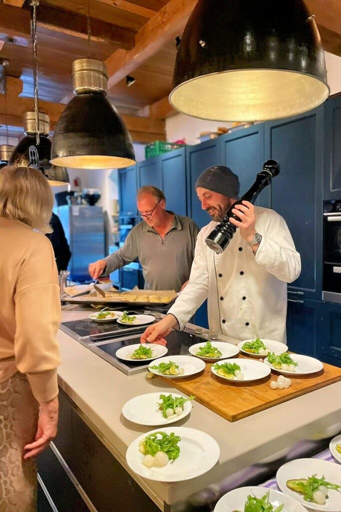 Küstenlady und Mühlen-Chefin Birte Friedländer und ihr Küchenchef Konstantin Gabelow erhörten meine kulinarischen Gebete. Mit mir genossen 33 Frauen unser erstes Schweizer Gipfeltreffen und das gab’s heute in fünf Gängen am Herd der offenen Hofküche: