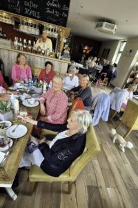Hier wird ausgecheckt und dann gibt es ein großes Hallo mit weiteren KÜSTENLADIES. Wir machen an diesem Nachmittag ein Kuchenfest im La Vie bei Steffen und Sabine. Anlass: Diese Woche hatten gleich zehn unserer Mitgliederinnen Geburtstag.