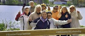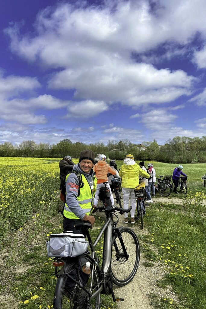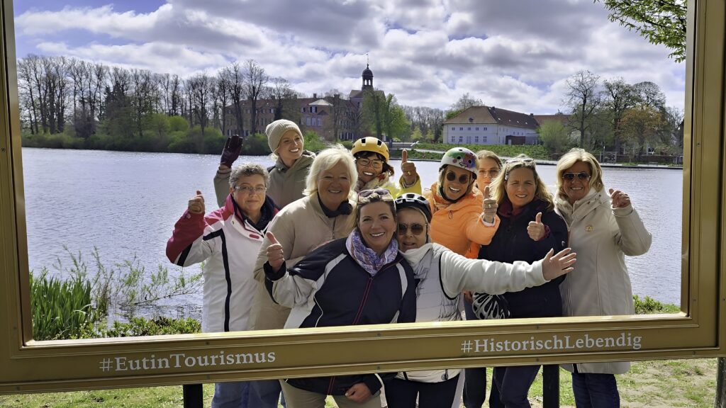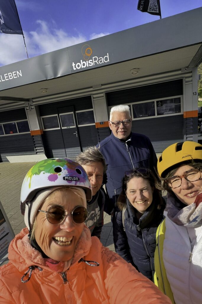 (25. April 2026) Radeln am Morgen, Kuchen am Nachmittag: Um 9:50 Uhr gibt Tourguide Thomas an diesem sonnigen Samstag das Zeichen zum Aufbruch: 15 KÜSTENLADIES starten am Morgen bei Tobis Rad am Kurpark Scharbeutz und brechen auf zur fröhlichen Radtour: Mit dem e-Bike durchs Binnenland zum Eutiner See. Als sicheres Schlusslicht dabei: Tourguide No. 2, uns KÜSTEN-KERL Hansi.