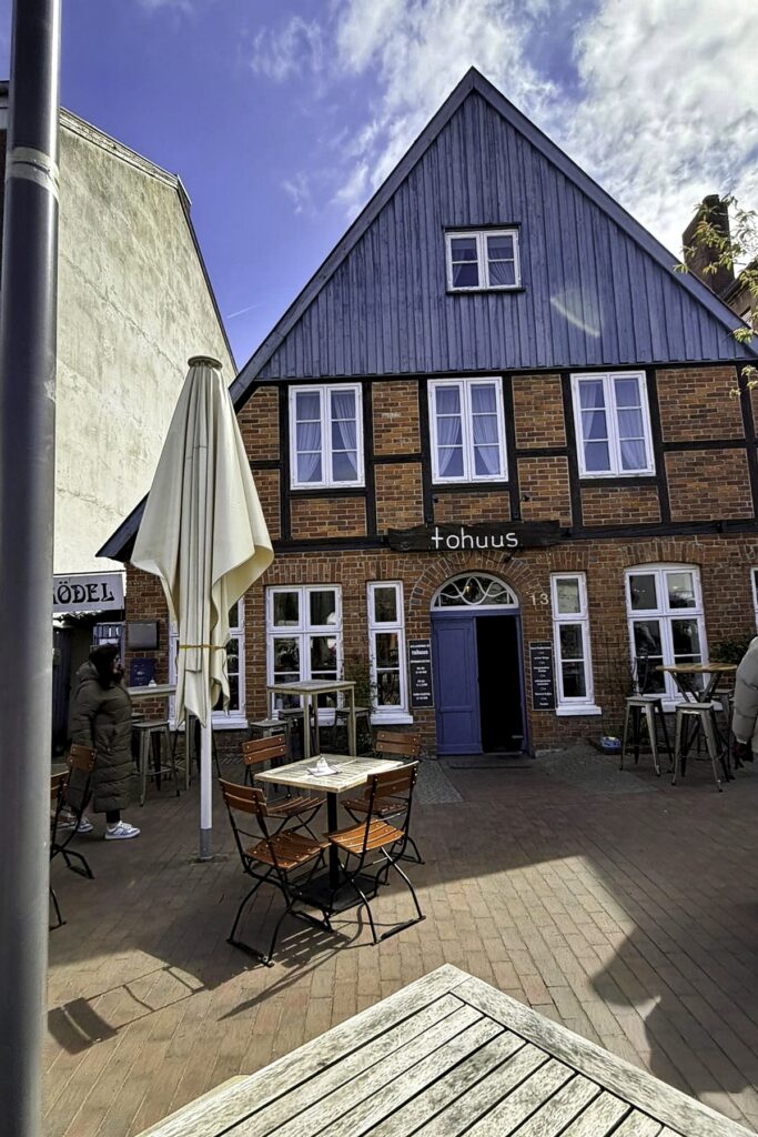 Um 12 zum Mittag gibt’s einen Lunch-Break im Tohuus am Markt in Eutin: 45 Minuten Verschnaufpause bei Fischbrötchen, Pizza und Salat bei mega-schönem Wetter im bunten, quirligen Marktgewusel. Danke, lieber Herr Kurosch, dass Sie uns Plätze freihalten konnten.