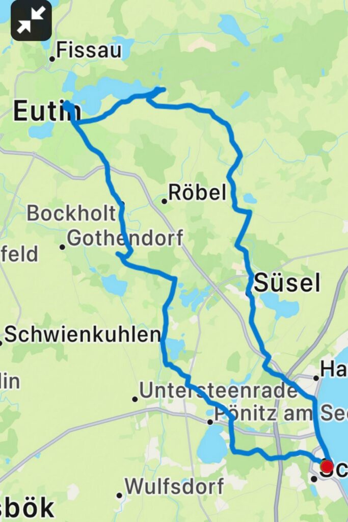 Die zweite Etappe geht dann gen Heimat mit Fotostopp am Eutiner See und dann über Gamal, Zarnekau, Griebel, Vinzier, Bujendorf, Süsel, Neukoppel zurück nach Hause in Haffkrug und Scharbeutz.