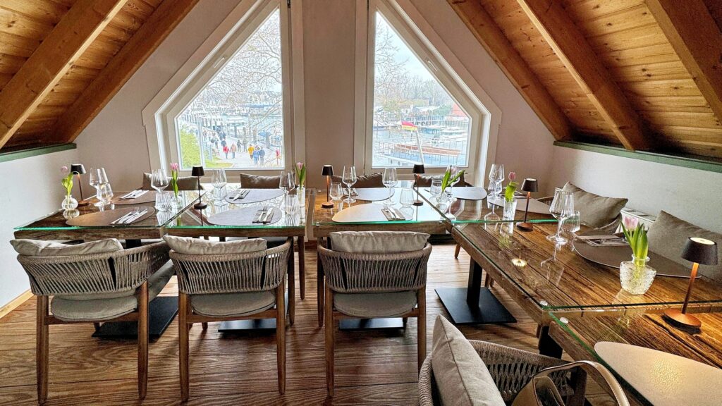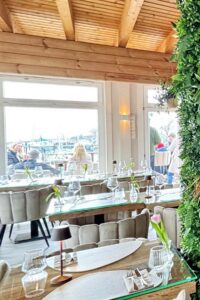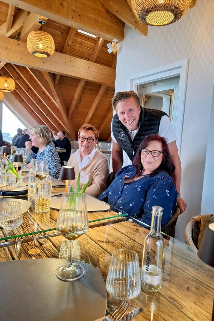 Unsere Host Petra A: „Es war ein unglaublich schöner Abend! Die Location ist wirklich richtig schön: perfekte Lage, Parkplätze direkt vor der Tür und ein traumhafter Ausblick über die Ostsee. Es hatte dieses ganz besondere KÜSTENLADIES-Feeling! Es war insgesamt etwas laut, da es sehr gut besucht war, aber wir hatten einen schönen Platz im ersten Obergeschoss. Ich habe mich für verschiedene Beilagen entschieden, weil ich richtig Lust auf Gemüse hatte – und es war großartig! So viele verschiedene Sorten, darunter auch wilder Brokkoli … ich glaube, das war das leckerste Gemüse meines Lebens! Hausherr Alexander hatte uns eigentlich noch als Gruß aus der Küche eine Fischsuppe versprochen, die dann leider vergessen wurde. Aber als Entschädigung durften wir uns alle ein Dessert von der Karte aussuchen, was ich sehr generös fand.“