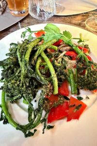 Susanne F: „Perfekte Steinpilz-Tortellini mit grünem Spargel und Parmesan, dazu ein Gläschen Grauburgunder, das hat gepasst und würde ich wieder so bestellen. Persönliche Vorstellung vom Chef des Hauses, herzlicher Empfang, sehr freundlicher Service und ein sehr gemütliches und gepflegtes Ambiente. Hier komme ich gerne wieder! Statt der Fischsuppe als Gruß aus der Küche vor dem Dinner, durften wir ein Dessert aus der Karte wählen. Ich hatte das Mango-Sorbet mit Sekt! Lecker – und auch eine sehr großzügige Geste!“