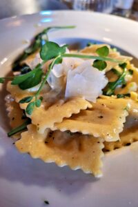 Frauke N: „Schönes Ambiente, sehr gutes Essen und tolle Gespräche. Ich würde meine Ravioli wieder bestellen, super lecker und eine große Portion. Auch der alkoholfreie Sekt als Begleiter hat mir sehr gut gefallen. Das Preis-Leistungsverhältnis stimmt!“