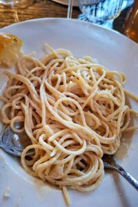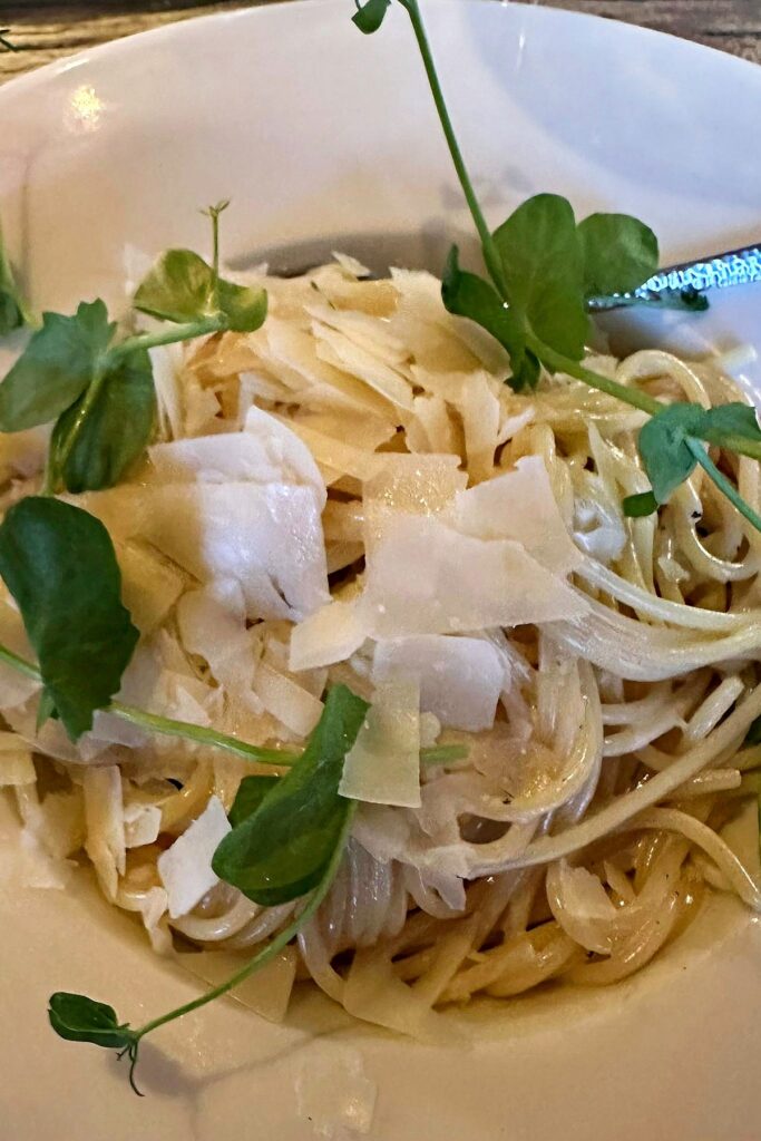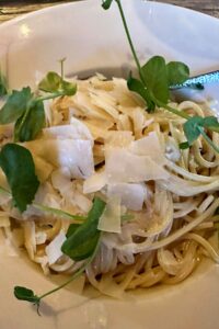 Sabine R: „Ich hatte ein Mango-Sorbet mit Prosecco als Aperitif und danach Spaghetti al Limone mit frischen Zitronenstücken, die ich selbst zum ‚Nachwürzen‘ verwenden konnte. Die haben die tolle Pasta geschmacklich noch intensiver gemacht. Als Dessert gab es ein köstliches Baileys Parfait aufs Haus. Begrüßung und Bewirtung waren sehr freundlich, die Räumlichkeiten nett und ansprechend. Die Wartezeit war etwas länger, da das Restaurant sehr gut besucht war. Hier hätten wir uns über etwas Brot oder ähnliches vorab gefreut, da wir doch sehr hungrig waren.“
