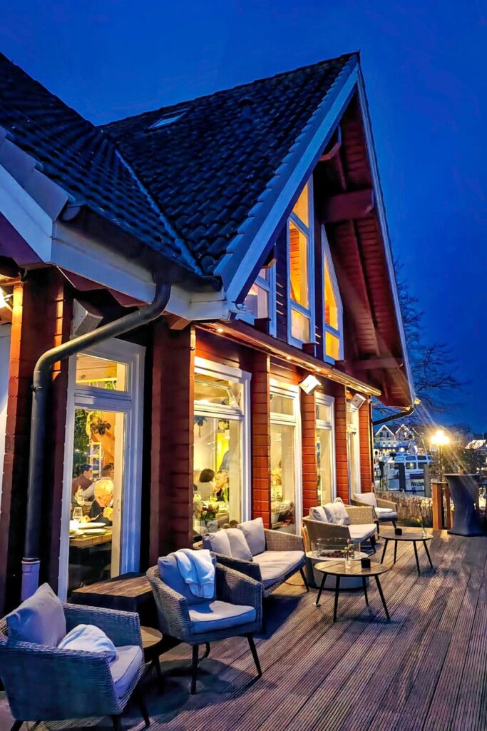 Vor kurzen hat Alexander Burghard, gastronomisch erfahren mit seiner erfolgreichen „Eventfabrik“ am Holm im benachbarten Neustadt, sein neues Restaurant im unübersehbaren roten Haus am Niendorfer Fischereihafen eröffnet: Hier serviert sein Team eine „internationale, ehrliche Küche mit frischen Zutaten.“ (Website) Das Restaurant bietet Platz für rund 30 Gäste drinnen plus 20 oben und rund 70 auf der Terrasse mit Traumblick auf Hafen und Ostsee.