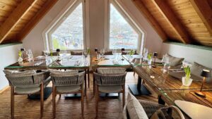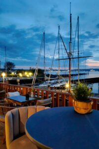 Claudia V: „Auch ich fand den Abend mega gelungen, das holzige Dachgeschoss sehr gemütlich mit Blick auf den Hafen und die Ostsee, einfach fantastisch! Meine Gemüsebeilage war frisch knackig und köstlich. Die Zitronen- Spaghetti hätte ich mir raffinierter und zitroniger gewünscht, aber die freundliche Crew, das moderne Interieur, der Rotwein, die tollen Gespräche mit interessanten Frauen und mein Baileys Dessert haben dann doch überzeugt. Ich freue mich schon aufs nächste Mal.“