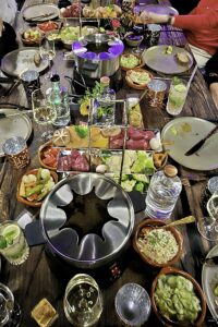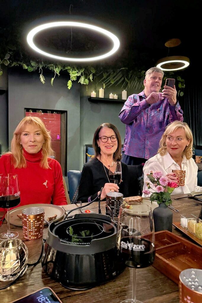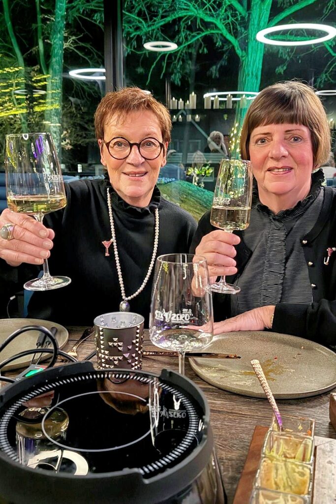 Normalerweise auf 12-15 Damen beschränkt, gab es diesmal eine Fondue-Tafel für 12 und – zeitlich um 20 Minuten versetzt – noch zwei weitere Rundtische, so dass wir diesmal mit 24 KÜSTENLADIES genießen konnten.