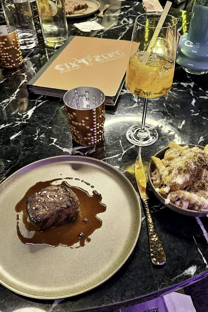 Julia B: Beim Fondue im Six Zero passt schlichtweg alles. Das Fleisch überzeugt qualitativ wie geschmacklich auf Spitzenniveau: zart, aromatisch, präzise ausgewählt. Die Beilagen überraschen mit Vielfalt und sind deutlich mehr als bloße Begleiter. Mein Fazit: Six Zero Fehler. Sechs von null Beanstandungen.