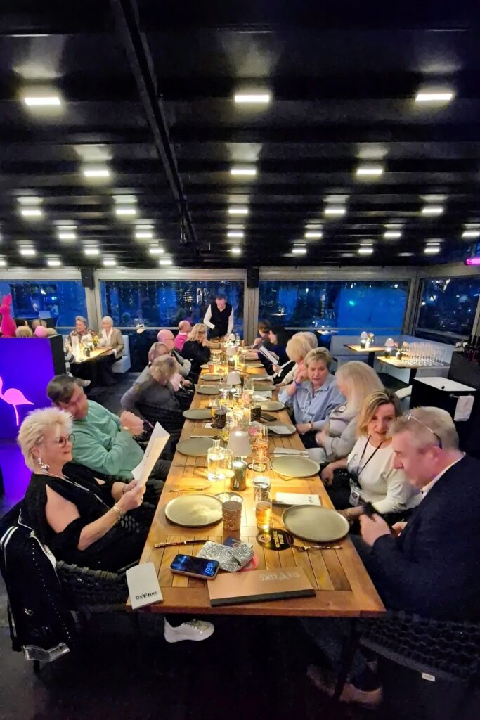 „Immer wenn ich denke, besser kann eine Veranstaltung nicht werden, werde ich von unserem Organisator Franck eines Besseren belehrt. Essen: super, super lecker! Der Service war eine Wucht. Und auch an unserem Tisch herrschte eine tolle Stimmung. Danke für den wunderschönen Abend!“ (Alexandra G)