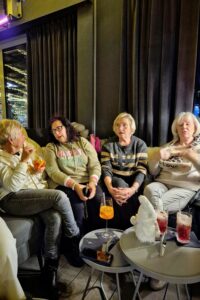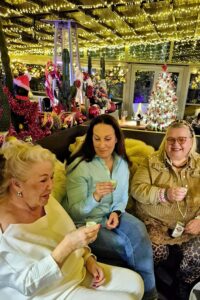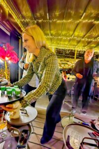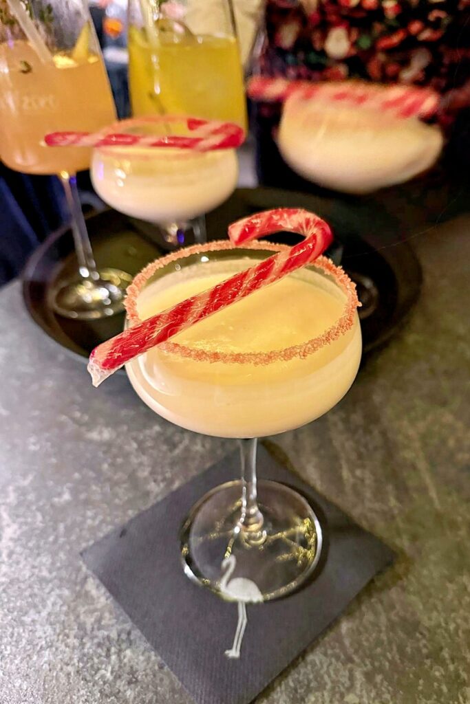 Alles funkelt, alles glitzert: 15 KÜSTENLADIES sind heute zur Eröffnung dabei und stoßen mit winterlichen Weihnachtscocktails wie „Snow Santa“ oder „Wichtel Trunk“ an. Gastgeber Christian Beilicke freut sich sichtlich über unseren Besuch und sagt persönlich Hallo! Ehefrau Nicole hat ein Tablett mit Shots für uns mixen lassen, erst ein „Candy Cane“ und gleich danach einen samtenen „Grinch“ in Minzgrün. Wir sagen Prost und danke, eine tolle Geste!