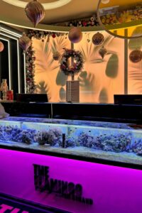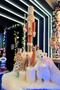 Die Idee hatte Hausherrin Nicole Beilicke, selbst riesen-großer Weihnachtsfan, die ihren Göttergatten & Flamingo-Bauherr Christian Beilicke nicht lange überreden musste. „Bis in letzter Minute haben wir und unser Team in den letzten Wochen an unserer XXL-Deko getüftelt und gefeilt“, erzählt sie uns und zeigt sichtbar stolz auf die bis ins letzte Detail mit viel Fantasie und Liebe geschmückten Hallen.
